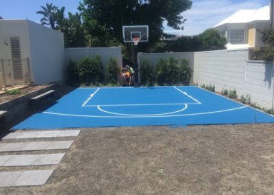This family in Queens Park wanted to make the most of their available space in their yard, so they contracted Dynamic Sports Facilities to install a cushioned basketball court in the available space. The area available was 9.3m x 7.8m – so they were able to include a full keyway and a section of the 3 point circle – a great area to practice those shots! The court consisted of a cushioned HSA surface in Byron Blue. The basketball tower was a Goalrilla CV60 tower.