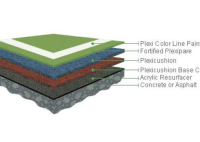 The Plexicushion System combines the consistent bounce, sure footing, and outstanding durability of Plexipave with the innovative shock-absorbing properties of EPDM Rubber cushioning. The Plexicushion substrate, a special blend of latex, rubber and plastic particles, forms a resilient layer that absorbs body shock and reduces muscle fatigue. The 100% acrylic Plexipave Surface provides consistent and uniform bounce, long lasting colour, and allows speed of play specification.